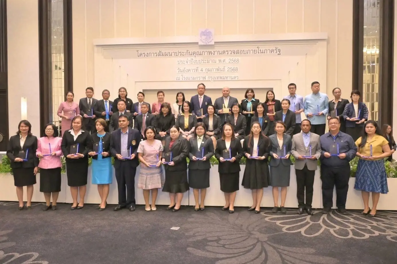 วันที่ 4 กุมภาพันธ์ 2568 นายสัตวแพทย์สมชวน รัตนมังคลานนท์ อธิบดีกรมปศุสัตว์ มอบหมายให้ นางสาวธารารัตน์ มูลิกา นักวิชาการตรวจสอบภายในชำนาญการพิเศษ รักษาการในตำแหน่งผู้เชี่ยวชาญด้านตรวจสอบภายใน รับประกาศเกียรติคุณการประกันคุณภาพงานตรวจสอบภายในภาครัฐจากภายนอกองค์กร ประจำปีงบประมาณ 2567 ซึ่งกรมปศุสัตว์มีผลการประเมินคุณภาพงานฯ ในครั้งนี้อยู่ในระดับ “ดี” โดยมี นางแพตริเซีย มงคลวนิช อธิบดีกรมบัญชีกลาง เป็นประธานมอบประกาศเกียรติคุณฯ ณ ห้องประชุมแกรนด์บอลรูม ชั้น 2 โรงแรมกราฟ โฮเทล กรุงเทพฯ