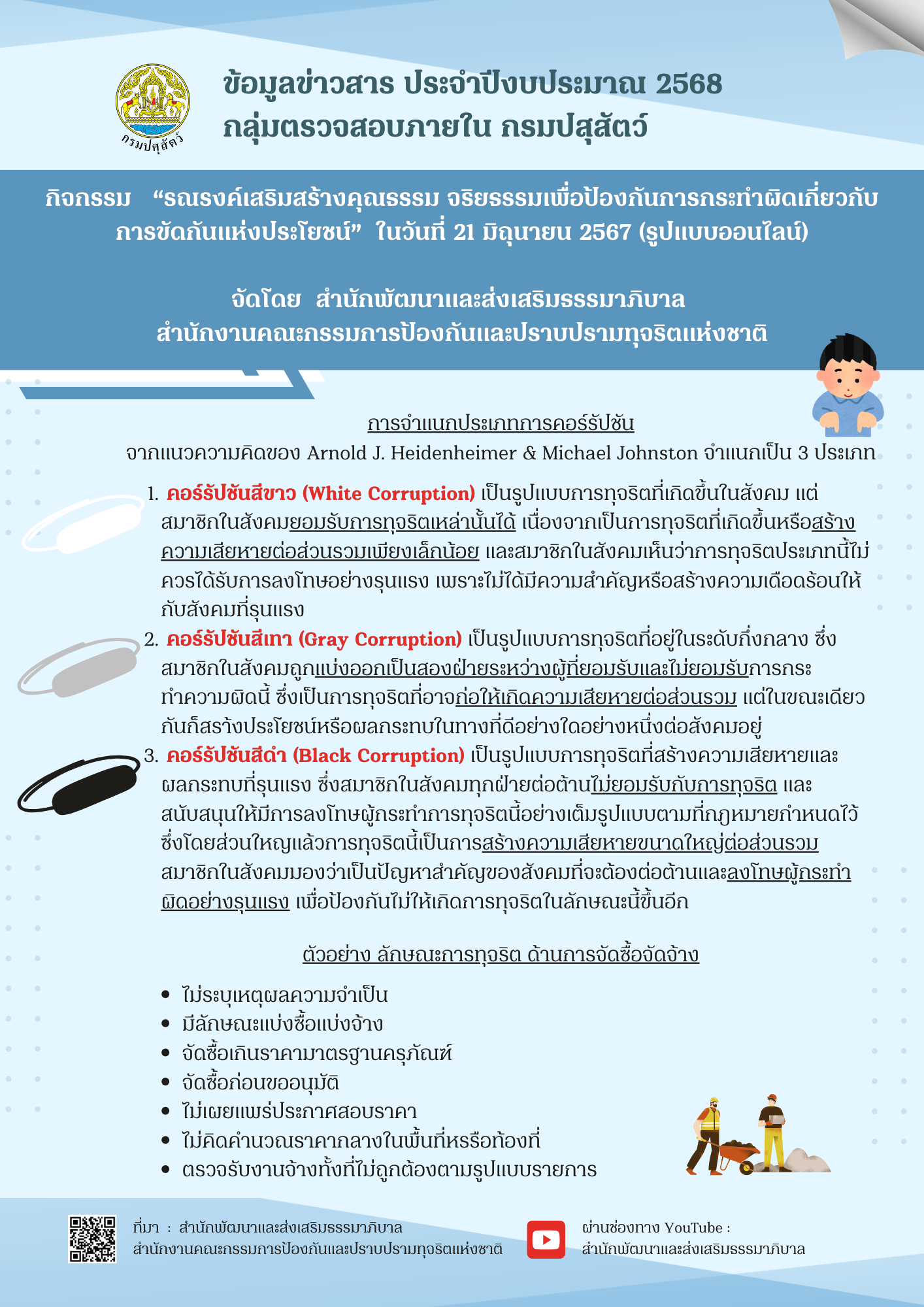 กลุ่มตรวจสอบภายใน เข้าร่วมกิจกรรมต่อต้านการทุจริตและประพฤติมิชอบของกรมปศุสัตว์ ภายใต้แนวคิด “FIGHT AGAINST CORRUPTION สู้ให้สุด หยุดการโกง” ในวันที่ 11 ธันวาคม 2567