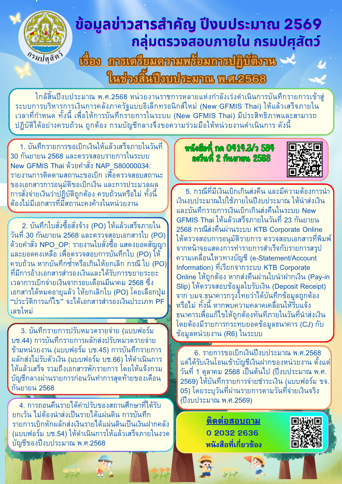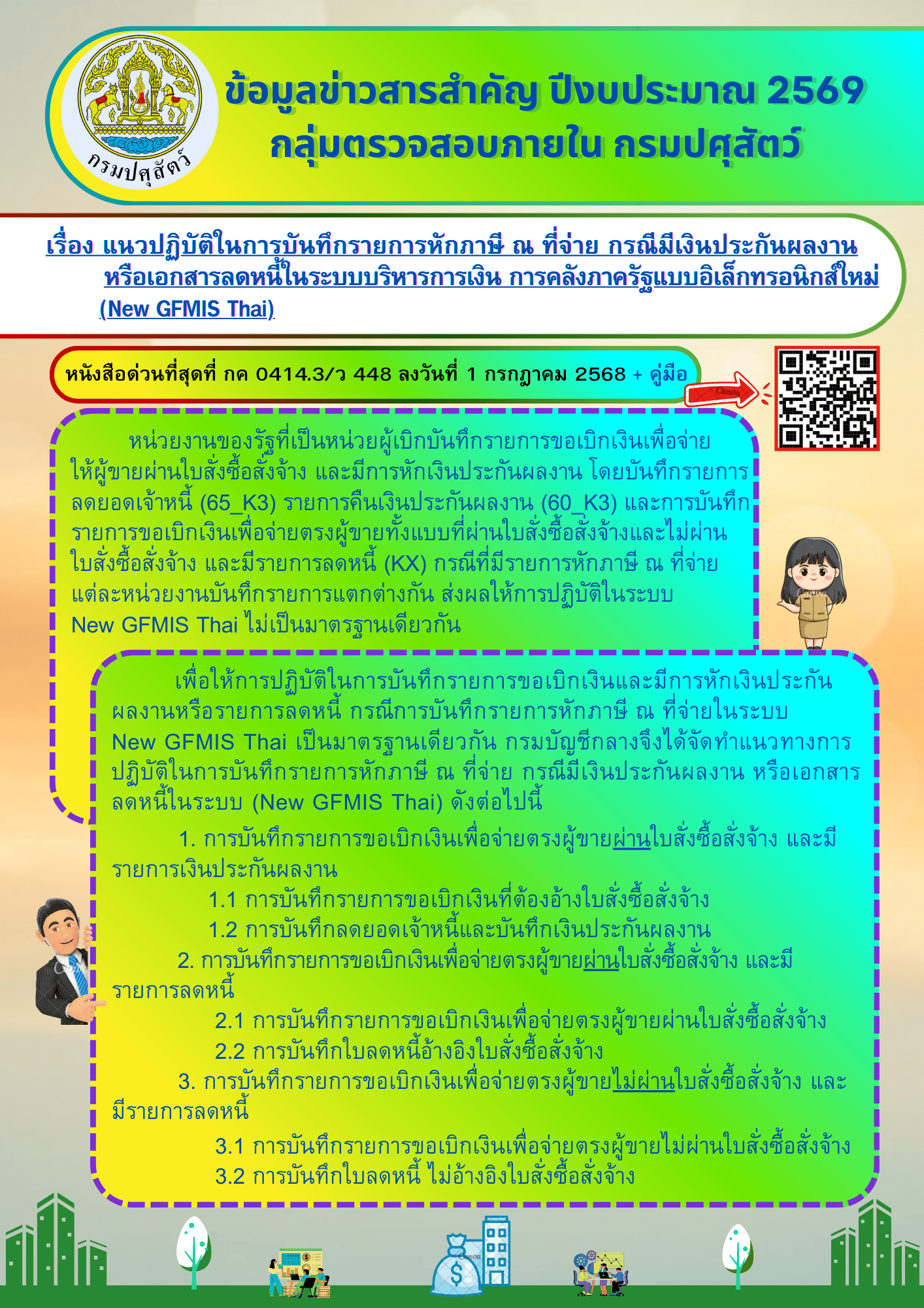 | 6. ปรับปรุงข้อมูลหลักผู้ขายประเภทต่างๆ ในการบริหารการเงินการคลังรังสีแบบอิเล็กทรอนิกส์ใหม่ (New GFMIS Thai) ตามหนังสือสำนักบัญชีกลางที่ กค 0414.3/ว477 ลงวันที่ 15 กรกฎาคม 2568 |