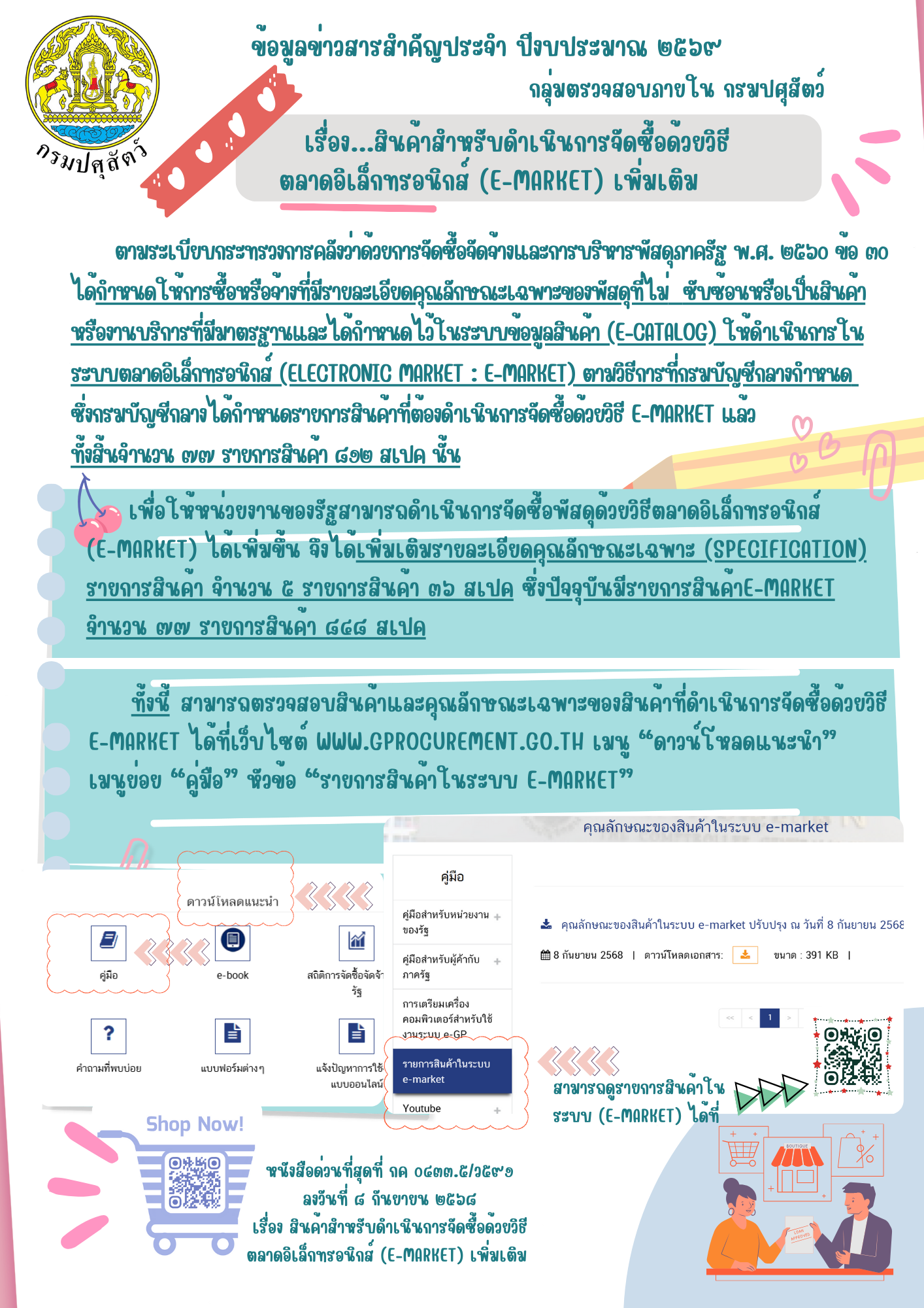 | 5. สินค้าสำหรับการดำเนินการจัดซื้อสำหรับตลาดอิเล็กทรอนิกส์ (E-market) เพิ่มเติม ตามหนังสือกรมบัญชีกลางที่ กค 0433.5/ว591 ลงวันที่ 8 กันยายน 2568 |
